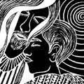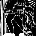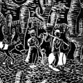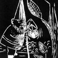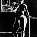 As gravuras foram executadas nas técnicas de ponta seca e linóleo gravura.